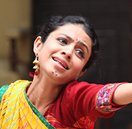 This transition becomes more apparent when Heli meets Alkini. She began to take on Alkini’s more feminine, sexualized style and maintained it for the rest of the play. In the scene when they meet, Heli wore a cut and colored dress. She appears more sexually free, like Alkini, and her mimicry of Alkini’s costume suggests a parallel between them, as she uses her wiles and her sexuality—literally, a bed trick—to win Bharatram. Did this costume transition imply empowerment or exploitation?
